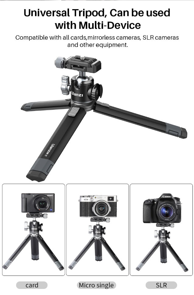 Функциональная настольная тренога с удлиняющимися ножками. С ее помощью вы сможете установить камеру на нужной высоте. Дополнительно, треногу можно использовать как монопод, она достаточно легко складывается. Имеет максимальную грузоподъемность 2.5 кг |