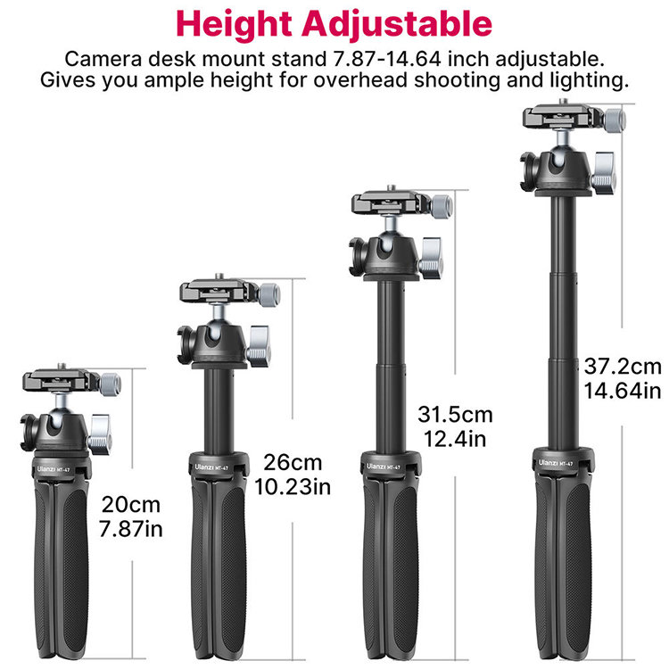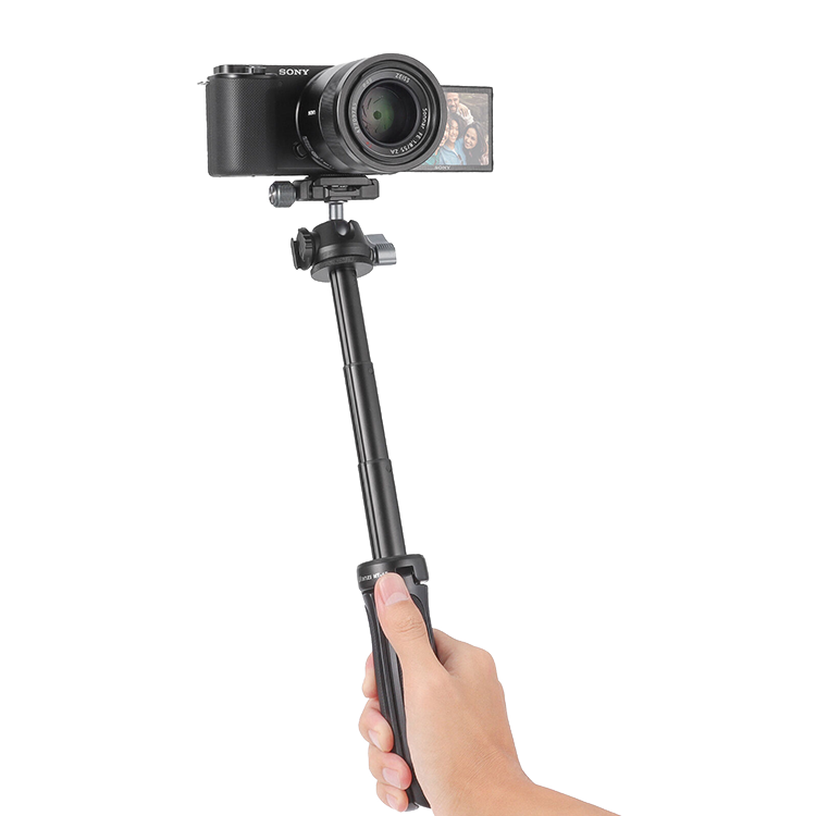 Телескопическая центральная колонна позволит увеличить общую длину до 372 мм. Сложив ножки вы получите прекрасный функциональный монопод |