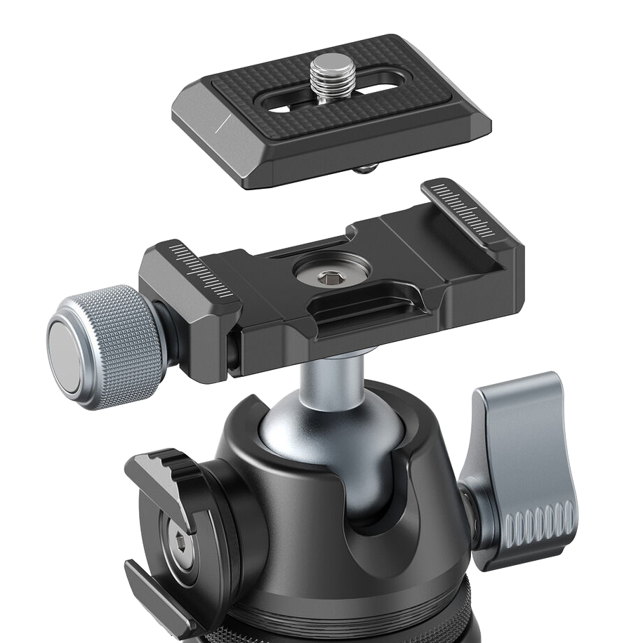 Штативная голова оснащена быстросъёмной площадкой типа Arca Swiss, что позволяет быстро переключаться между соответствующими креплениями |