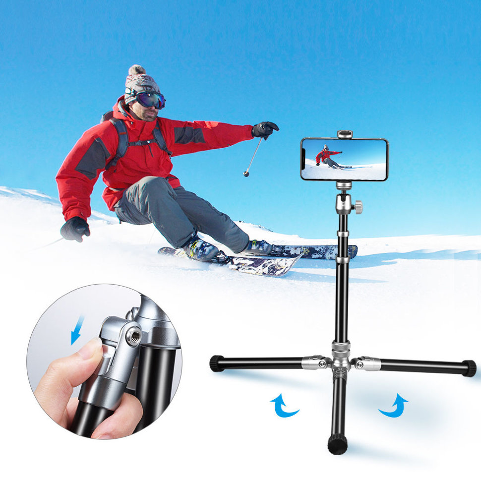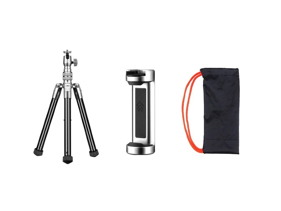 Практичность, надежностьДевайс выполнен из высокопрочного алюминиевого сплава. Конструкция характеризуется легкостью и простотой использования. В комплект добавлен держатель для смартфона и сумка-чехол для транспортировки. В креплении ножки предусомтрено крепление 1/4" для установки кронштейна |