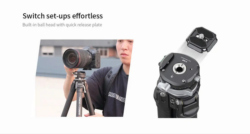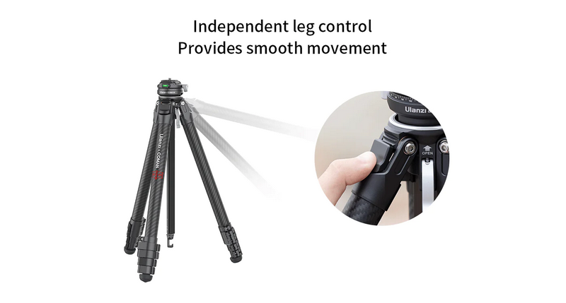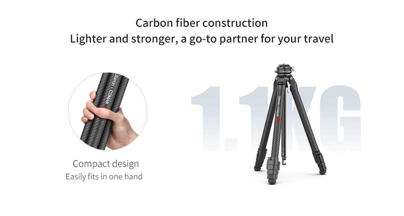 Ulanzi x Coman Zero F38 - ваш идеальный спутник в путешествии для съемки потрясающих фотографий и видео! Изготовленный из высококачественного углеродного волокна, этот штатив одновременно легкий и прочный, что делает его идеальным выбором для дальней дороги. Модель легко помещается в одной руке и имеет вес всего 1.1 кг, что делает его идеальным для съемки в путешествиях |