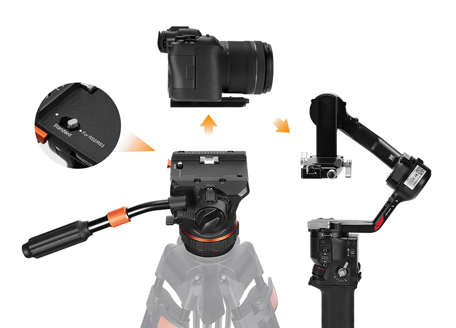 Высокая функциональностьBV50 способна работать с быстросъёмными площадками стандарта Manfrotto и Arca Swiss применяемых в стабилизаторах DJI RS. Рукоятка может быть установлена с обеих сторон, а также отрегулирована по длине 23.5 - 37.5 см |