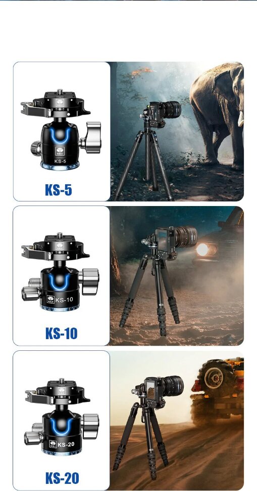 Самая лёгкая в серииМладшая модель штативной головы серии KS с грузоподъёмностью до 10 кг и весом менее 300г. Отлично подойдет для лёгких штативов, обеспечивая качественную съёмку, но при этом не вызовет трудностей при транспортировке |