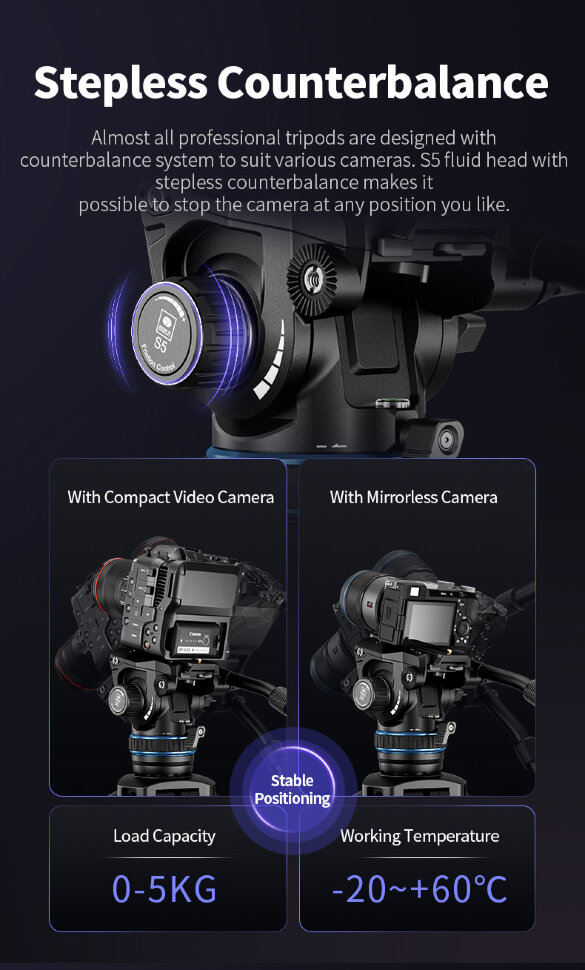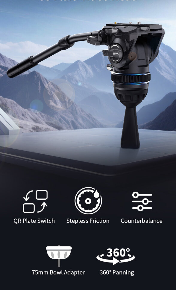 Мягкое движениеПрофессиональная штативная голова с полусферой 75мм в основании для работы с heavy duty штативами. Конструкция из алюминия выдерживает 5 кг нагрузки, а благодаря современной системе противовесов (регулировка 0 -5 кг) обеспечено мягкое плавное движение даже в массивной камерой. Наклон регулируется от +90° до -70°. На корпусе предусмотрено винтовое отверстие 1/4" для установки дополнительных креплений |