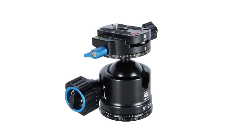 Шаровая голова оборудована быстросъёмной площадкой с профилем Arca Swiss. Выдерживает полезную нагрузку в 35 кг, диаметр шарнира, имеет прижимные замки на осях для фиксации положения |