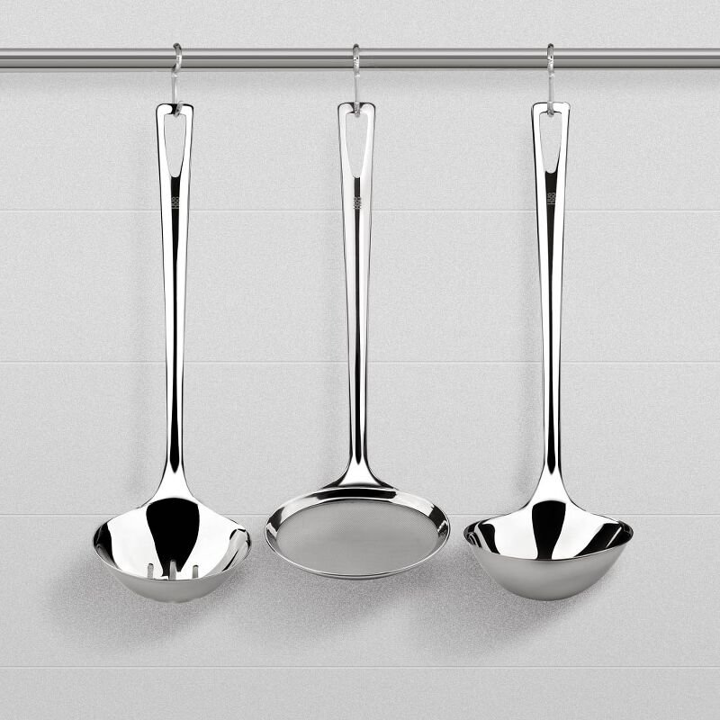 Удобное использованиеМелкая сетка дает возможность использовать шумовку для любых и всевозможных задач. Она обеспечит выемку даже самых мелких ингредиентов, будь то кусочки еды, овощей или кляра во фритюре. Хранение шумовки возможно непосредственно над рабочим столом, подвесив за проушину |