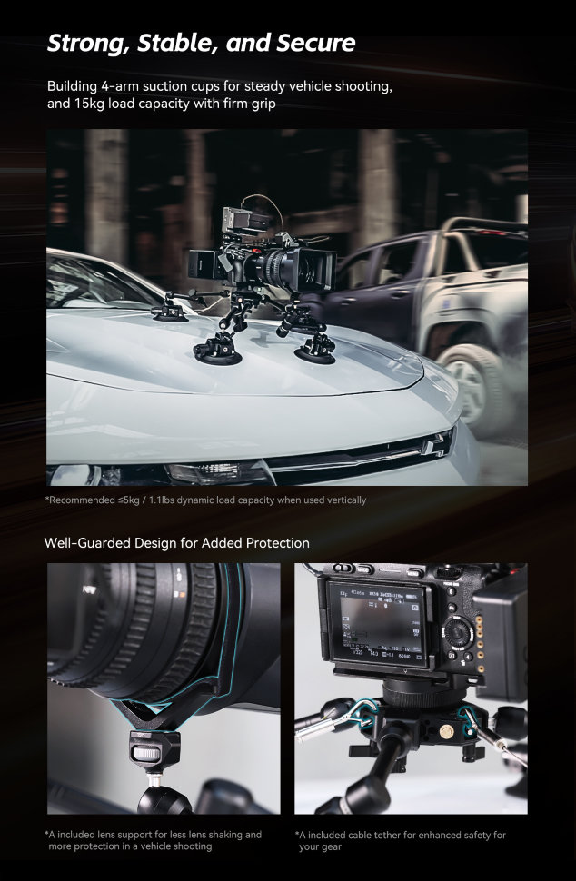 Быстрая установкаКрепление NATO позволяет быстро зафиксировать присоски и установить камеру в требуемом положении. Благодаря полусферической голове для выравнивания предусмотрена возможность корректировки угла наклона, чтобы можно было зафиксировать камеру в нужном положении. Система Arca-Swiss позволит быстро переключаться между различными видами съемок |