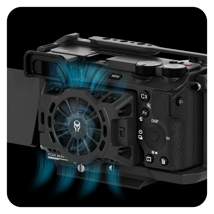 Система охлаждения для камеры Sony a6700 пригодится для продолжительной съёмки в условиях возможного перегрева. Необходимо установить кулер на свободный слот дисплея и вы сможете обезопасить процесс работы |