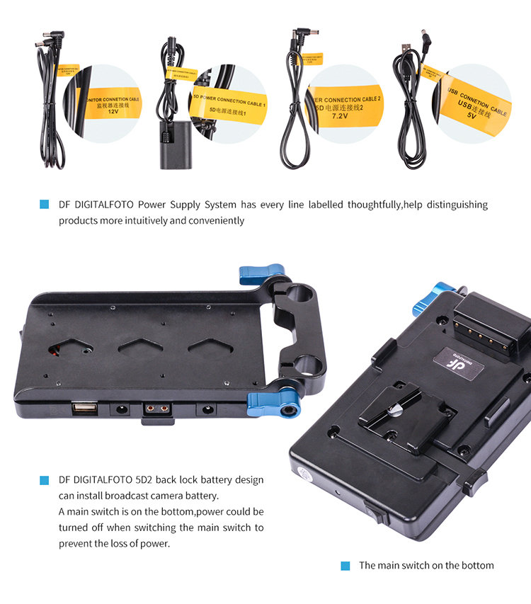 Система питания позволяет питать и подзаряжать различные устройства от установленного аккумулятора типа V-mount |