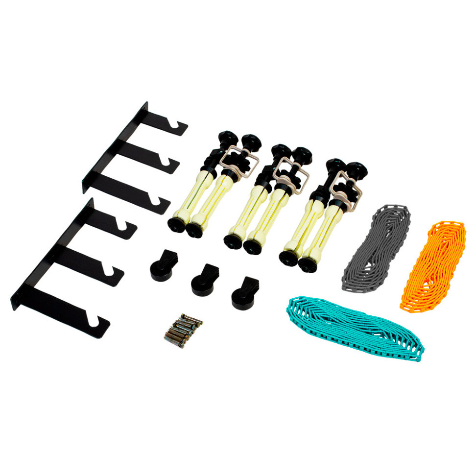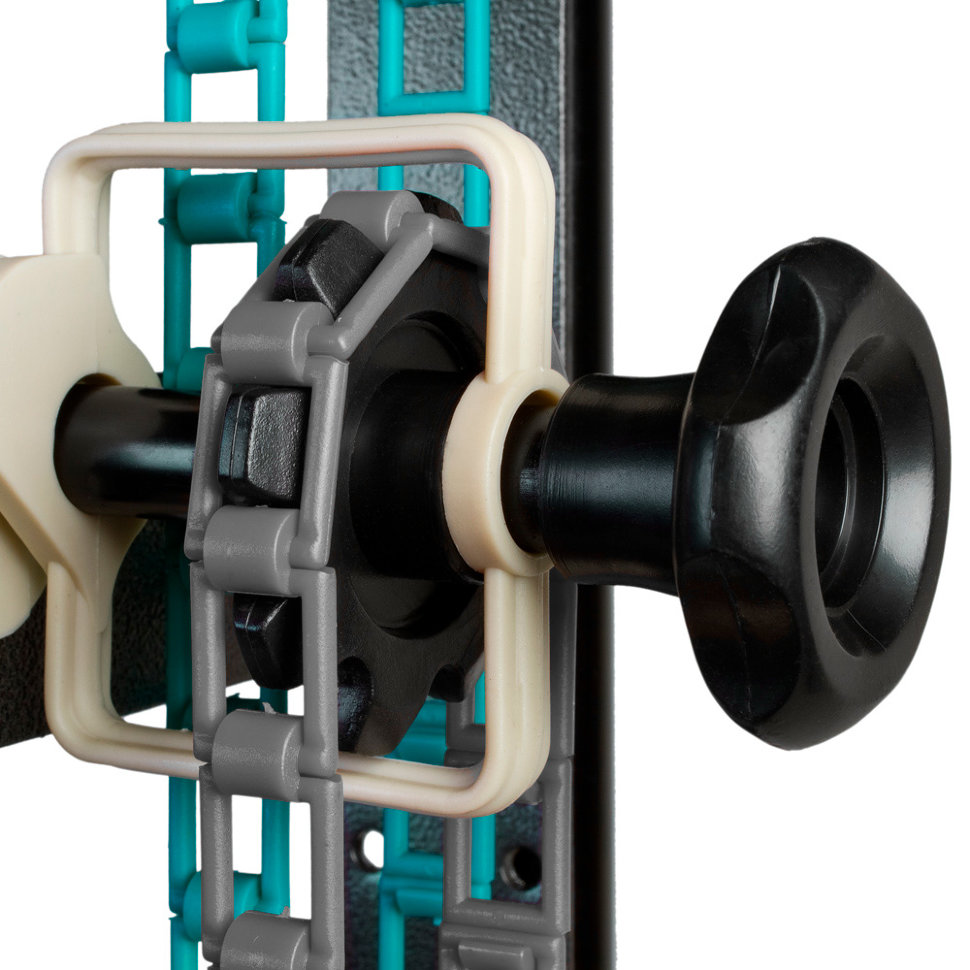 Удобная и простая система для установки и регулирования сразу трёх бумажных фонов. Закрепить её можно сразу на стены или потолок, а цепи разных цветов помогут быстрее сориентироваться |