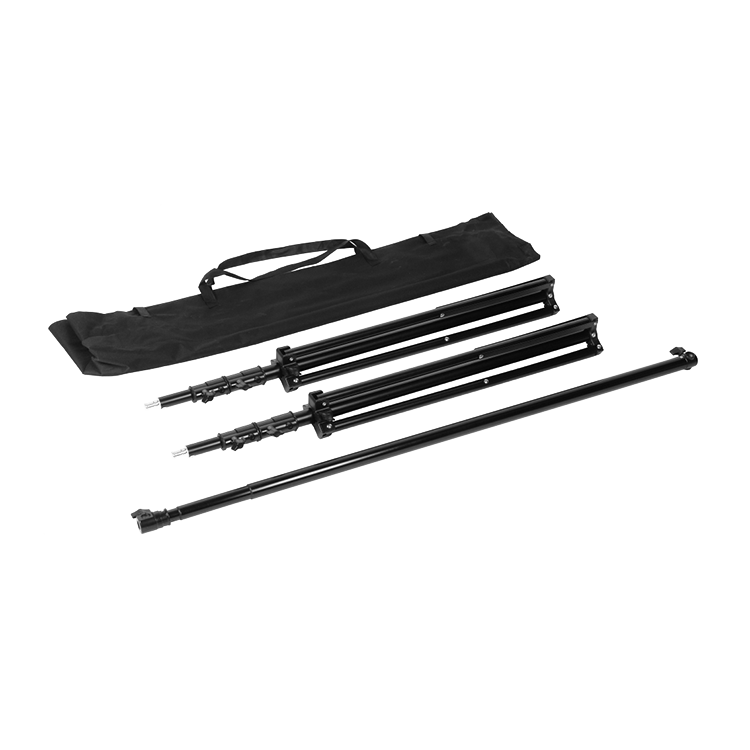 Система состоит из двух алюминиевых стоек высотой 260 см и трехсекционной раздвижной перекладины длиной 300 см. В сложенном виде стойки имеют длину всего 97 см и легко поместятся в сумку. Для более комфортной переноски сумка оснащена ручками и ремнем |