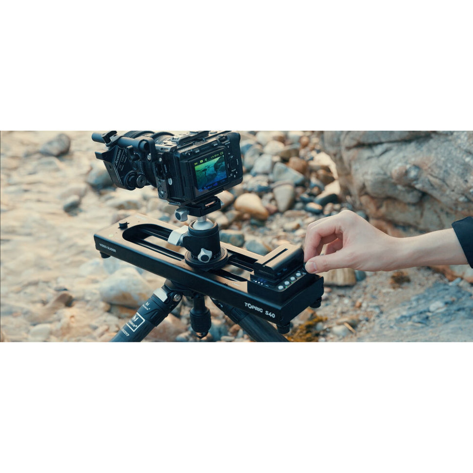 Лёгкий и компактный слайдер с мотором для съёмки потрясающих видео! Модель выдерживает до 4 кг горизонтальной нагрузки, и до 2.5 кг вертикальной, при этом старт и остановка будут очень плавными |