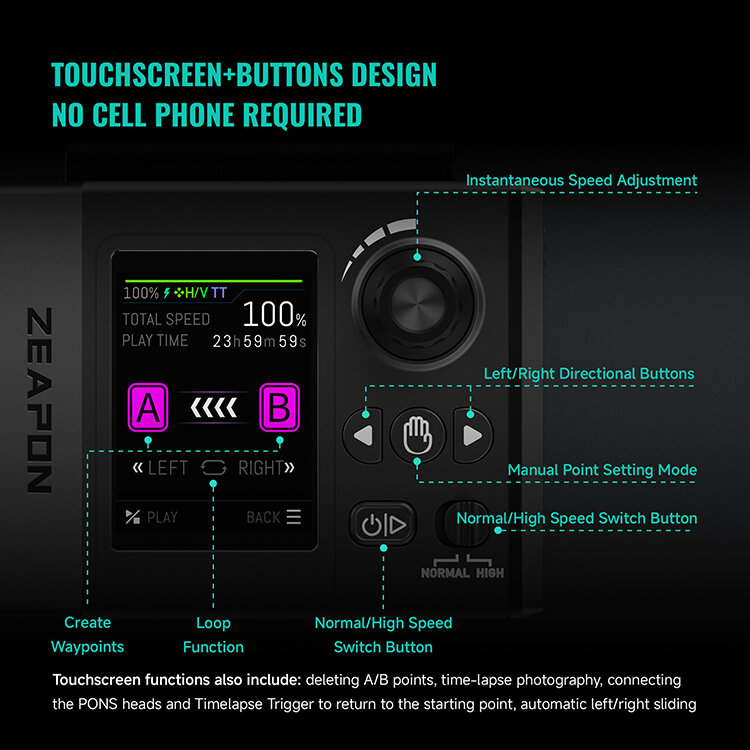 Бесщеточный мотор с высокой скоростью и точностьюZeapon Micro4 оснащен новым ультра-тихим бесщеточным мотором, который обеспечивает идеальный баланс между скоростью и крутящим моментом. С помощью кнопки переключения можно мгновенно активировать режим высокой скорости для создания динамичных эффектов, таких как долли-зум, который недоступен для традиционных слайдеров. Автоматический и ручной режимы позволяют пользователю гибко выбирать способ управления движением камеры |