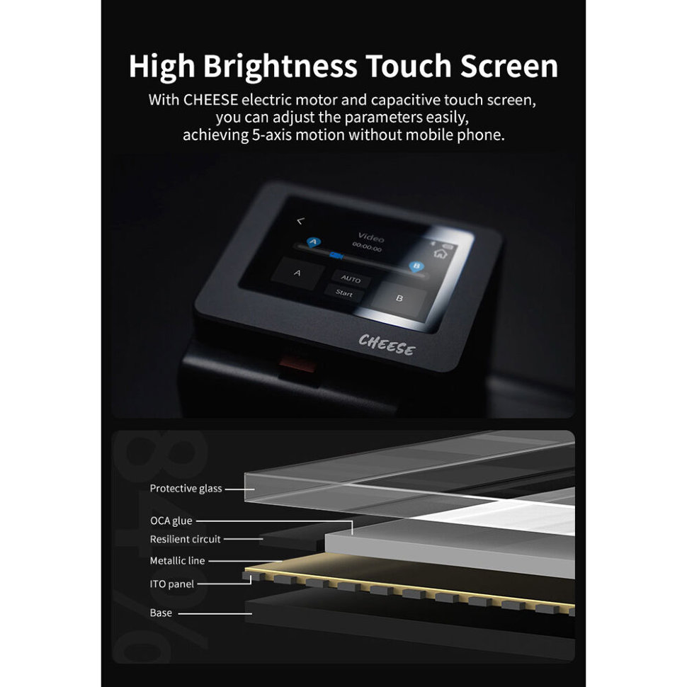 Мотор с дисплеемМодуль Cheese представляет собой мотор со встроенным дисплеем, на котором вы сможете быстро переключать режимы без привлечения дополнительных устройств. Также доступно подключение к мобильному приложению для дистанционного управления. Модуль способен работать от батареи стандарта NP-F, при этом даже ёмкости в 2200 мАч хватит на 4.5 часа работы, либо вы можете подключить внешний аккумулятор по USB |