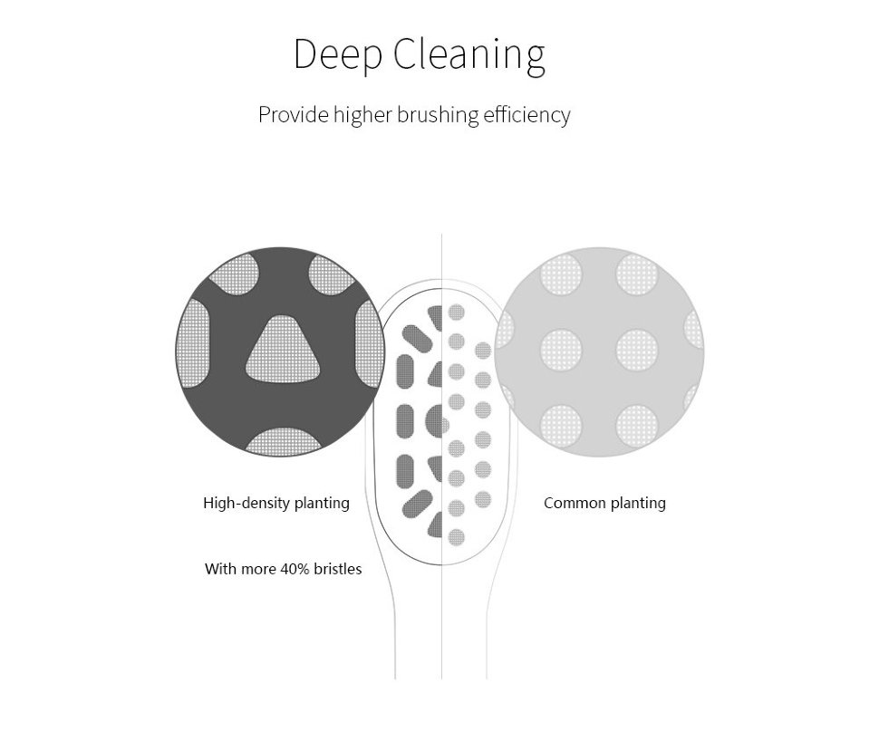 Тщательное очищениеВысокая плотность щетинок позволяет тщательно удалять налет. Чем больше щетинок соприкасаются с поверхностью зубов, тем эффективнее чистка. Щетинки объемной насадки проникают даже в самые труднодоступные места полости рта |