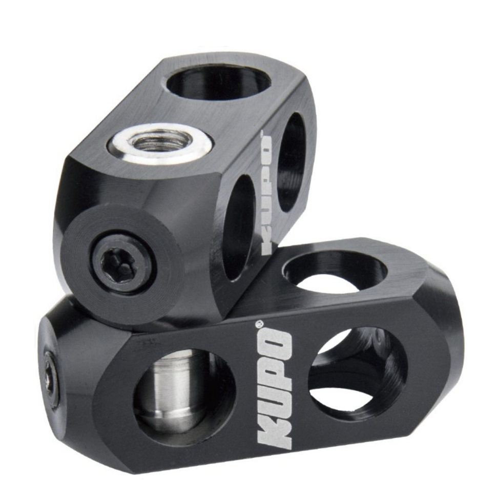 KCP-198 Dual Swiver Connector из серии U-Grip изготовлено из алюминиевого сплава методом ЧПУ-обработки с анодированным покрытием черного цвета. Оно объединяет два многопозиционных приемника 5/8" и поворотный шкворень 16 мм, обеспечивающий вращение на 360°. На обоих концах шкворня расположены резьбовые гнезда 3/8" для крепления любого оборудования с соответствующей наружной резьбой. Конструкция профессионального уровня устраняет вибрации камеры и осветительных приборов, обеспечивая точное позиционирование в автомобильных системах крепления или при работе со студийным оборудованием