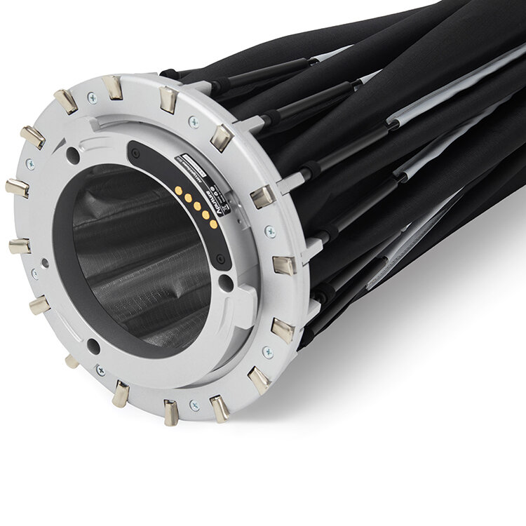 Параболический софтбокс большого диаметра для равномерного рассеивания света. В комплекте предусмотрены соты, при помощи которых можно получить более контрастные тени. Разработан специально для осветителя STORM XT52 и имеет байонет A-mount |