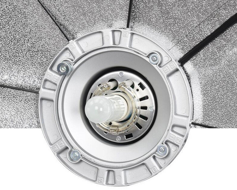 Насадка позволяет скорректировать световой поток, делая его более мягким, а отражатель внутри позволяет избежать потерь света. Для придания контрастности можно воспользоваться специальными сотами в комплекте |