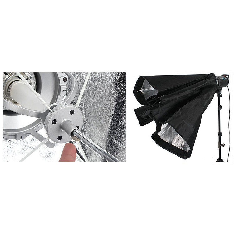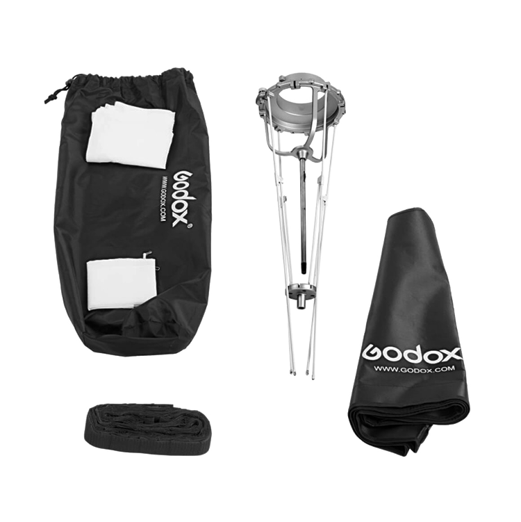 Конструкция насадки характеризуется простой и быстрой сборкой/разборкой. Установка выполняется с помощью насадки и сменного кольца на Bowens. Такое соединение дает возможность софтбоксу вращаться. В собранном виде его легко транспортировать и хранить |