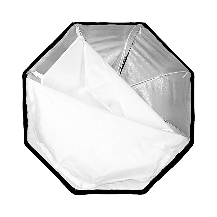 Внутри октобокс имеет серебристую отражающую поверхность, которая равномерно распределяет свет. Его можно использовать при съемке портретов и в предметной съемке, когда особенно важна естественная форма светового пучка и блика |