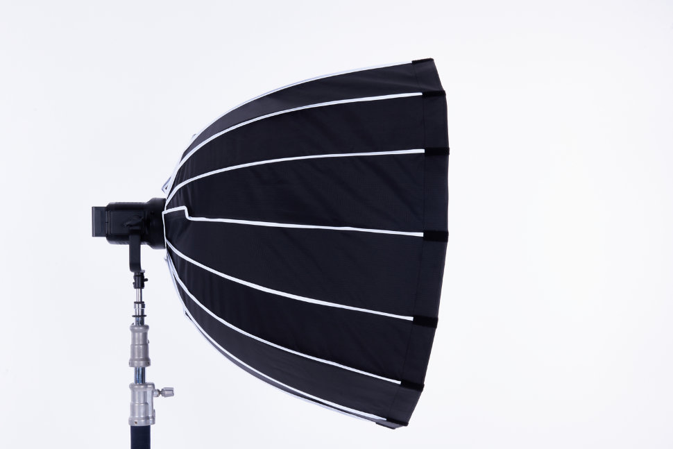Надежный параболический софтбокс для студийных осветителей с байонетом Bowens. Насадка поможет сделать свет более объёмным, с мягкими тенями за счёт значительного увеличения площади |