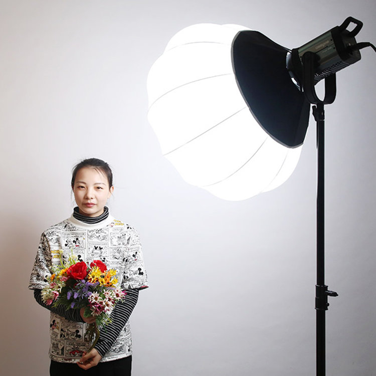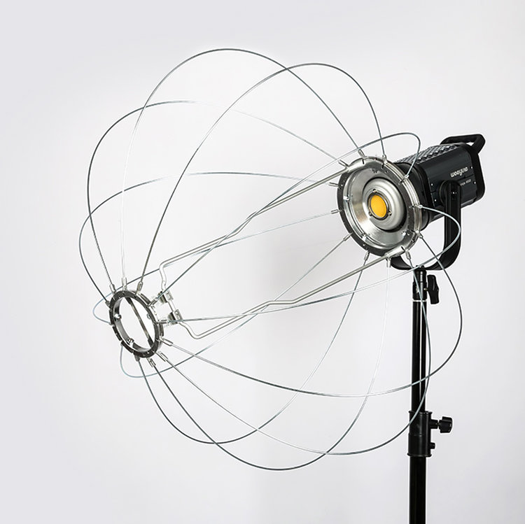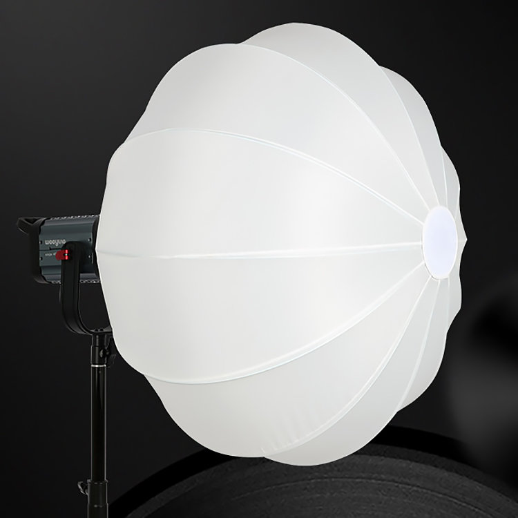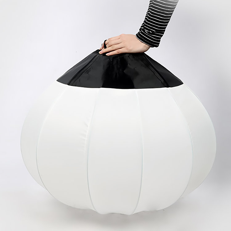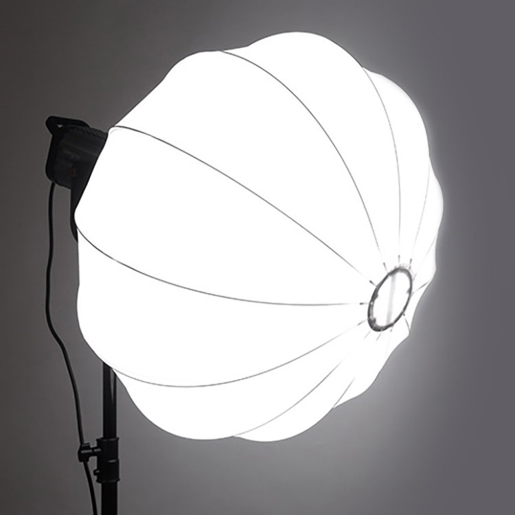 Сферический софтбокс диаметром 65 см. Основное назначение заключается в заполнении мягким светом большого пространства за счёт объёмной формы насадки. Угол рассеивания составляет 270° |