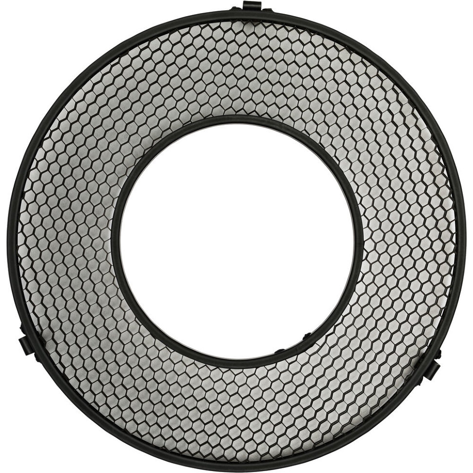 Устройство легко устанавливается на внешний край рефлектора импульсной головы R1200 и удерживается за счет трех язычков-зажимов. Решетка с углом рассеяния 30° позволяет сужать широкий световой луч, создавая управляемый и направленный световой поток |