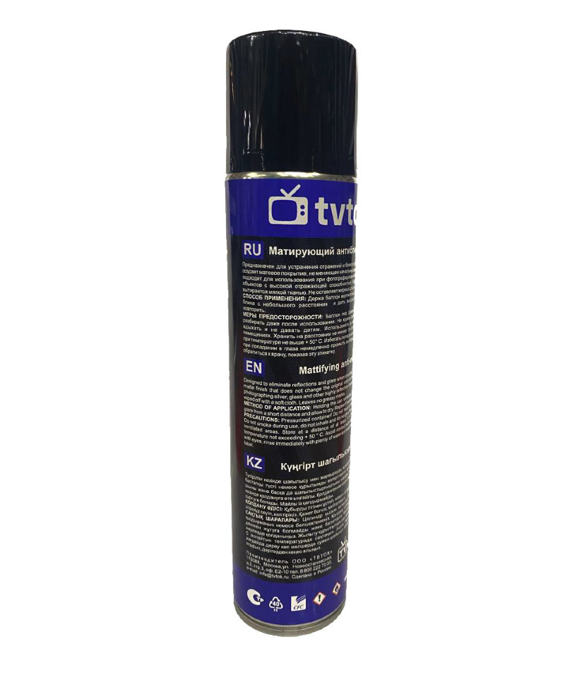 Спрей - антиблик используется для работы со стеклянными и отражающими поверхностями, например, зеркалами. Создает матовое покрытие на поверхностях, не оставляя при этом на них грязи и жирных следов. После использования нанесенное покрытие легко стирается сухой мягкой тряпкой |