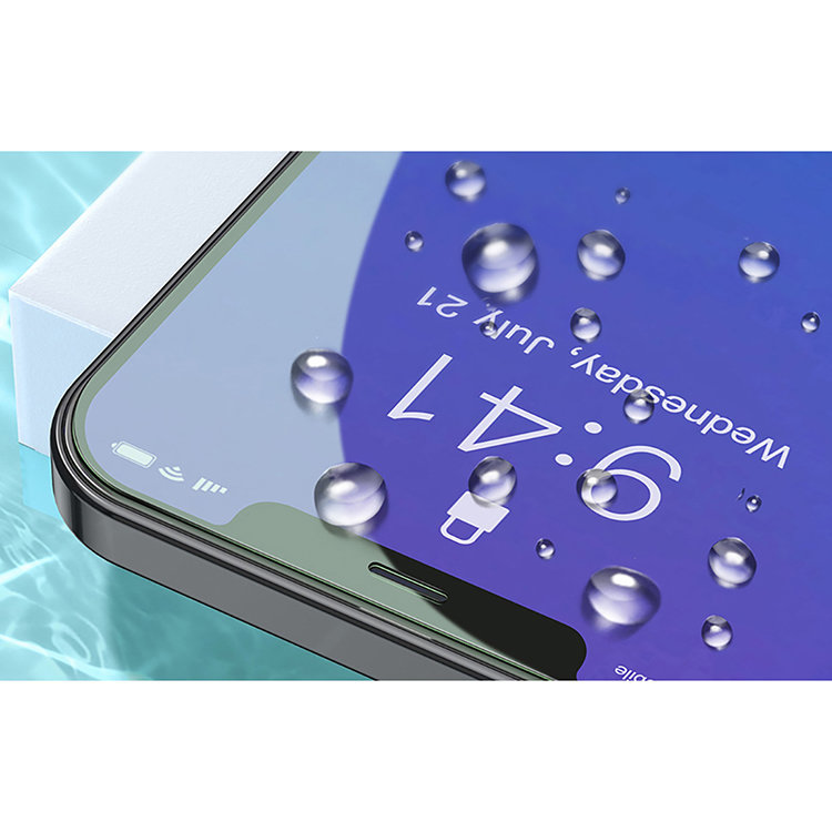Защитное стекло от бренда Baseus с олеофобным покрытием обеспечивает надежную защиту экрана iPhone, поскольку покрывает всю поверхность лицевой панели от края до края |