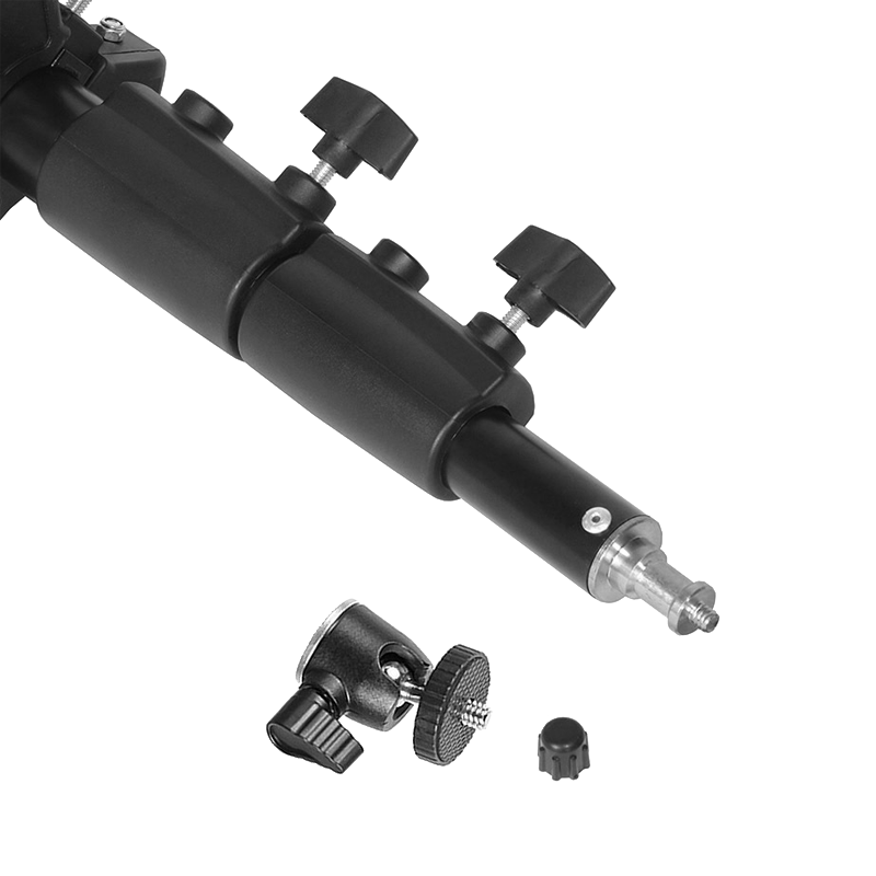 | Облегченная стойка-тренога алюминиевая с шаровой миниголовкой. Представленная модель предназначена для цифровых видеокамер. Входящая в комплектацию шаровая головка имеет функцию фиксации угла поворота, снабжена посадочным резьбовым винтом 1/4" для закрепления видеокамеры в требуемом положении. Конструкция может быть установлена на высоте от 260 мм до 109 мм |