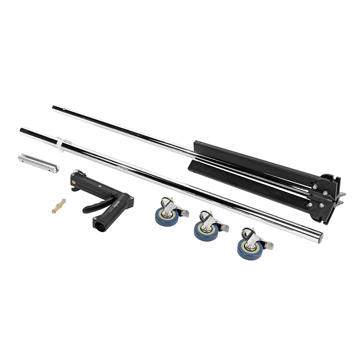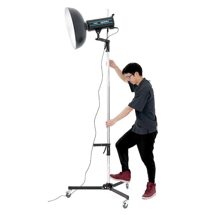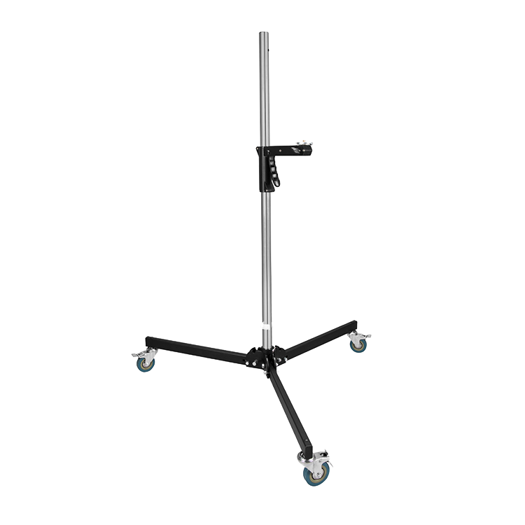 Студийная стойка 240FS имеет низкую устойчивую опору с тремя колесами Ø75 мм, каждый из которых оснащен тормозным механизмом. Это обеспечивает легкое перемещение и надежную установку в любой точке на съемочной площадке - как в павильоне, так и на улице |