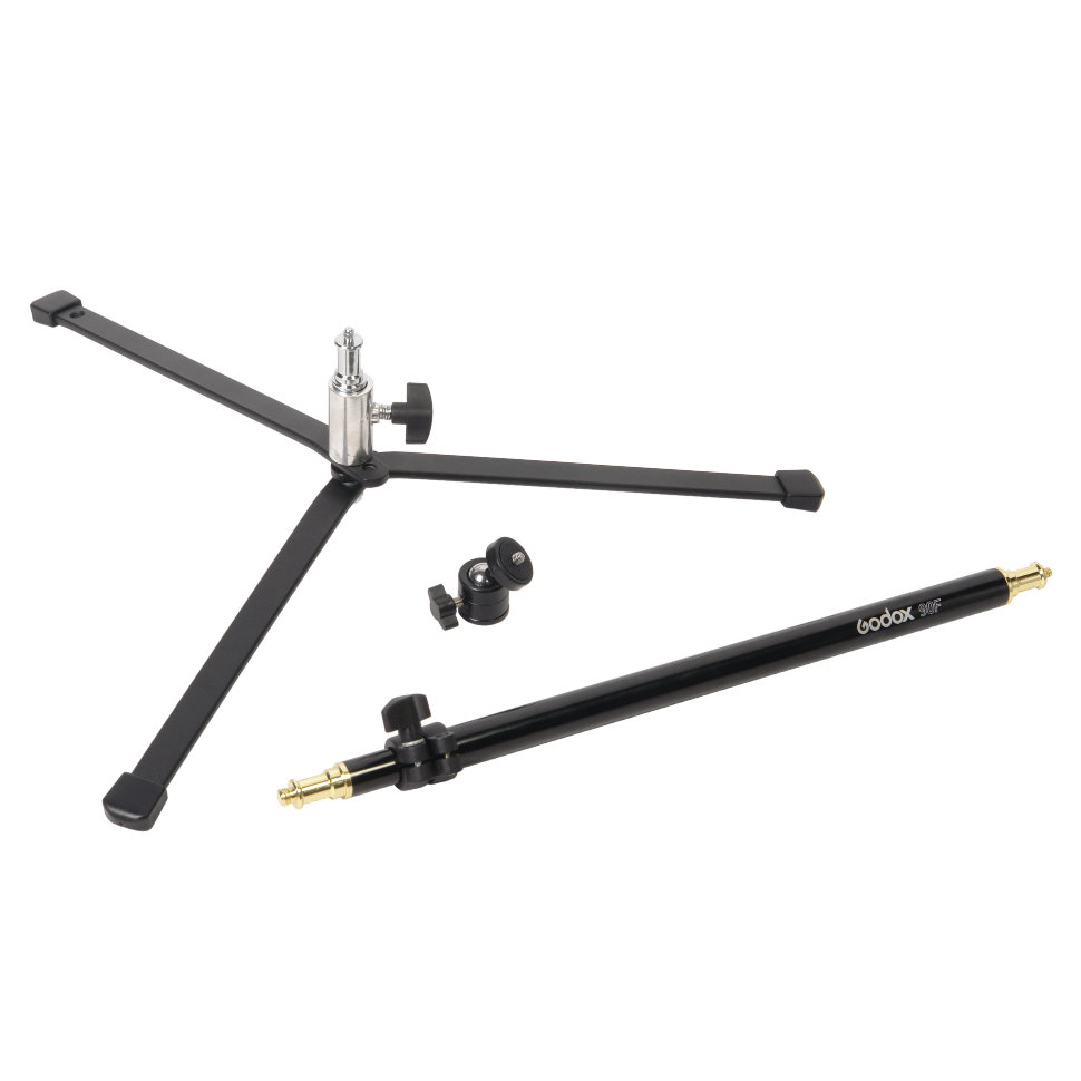 Также стойка Godox 90F оснащена шаровой миниголовкой с металлическим винтом на конце и посадочной резьбой 1/4”, на которую можно установить цифровую камеру, осветитель или иное оборудование. Она может вращаться на 360° и наклоняться вперед на 90°. В комплект также входит гайка-переходник с резьбы 1/4” на 3/8” |