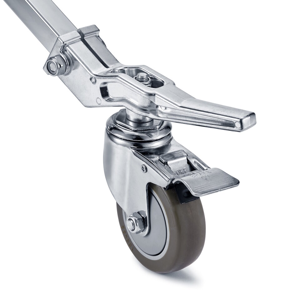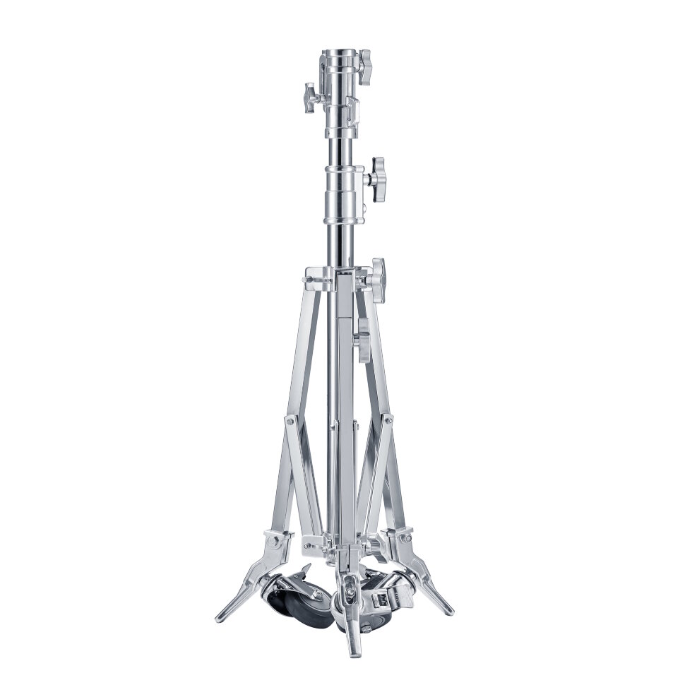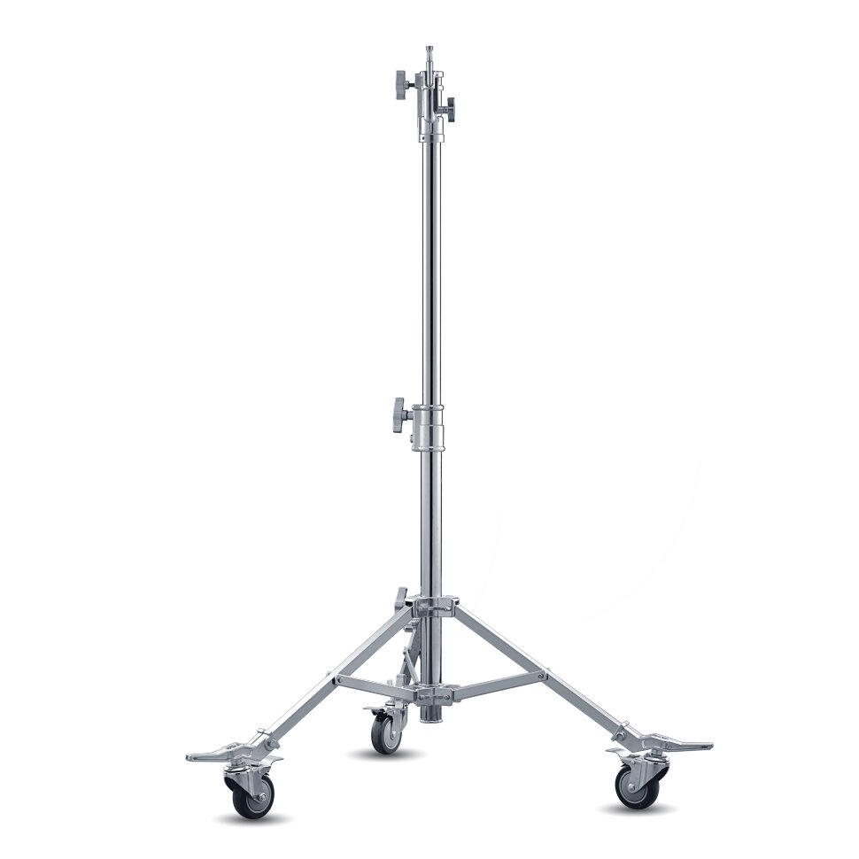 Удобство использованияДизайн стойки включает колесную базу с тормозным механизмом и резиновым протектором на колесах, что позволяет легко перемещать стойку даже по неровным поверхностям. Компактные размеры в сложенном виде делают стойку идеальной для транспортировки и хранения, упрощая ее использование в различных условиях съемки |