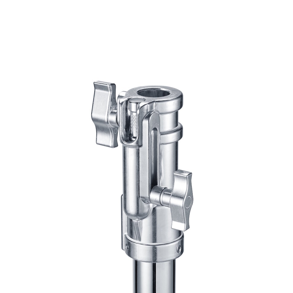 Дополнительные крепленияМодель оснащена креплением 1-1/8" Junior, а также 5/8" поворотным штифтом, что позволяет использовать разнообразные аксессуары, такие как рассеиватели и флаг-панели. Телескопические секции стойки легко регулируются с помощью усиленных винтовых зажимов, обеспечивая безопасное и устойчивое расположение оборудования на высоте от 92 до 168 см |