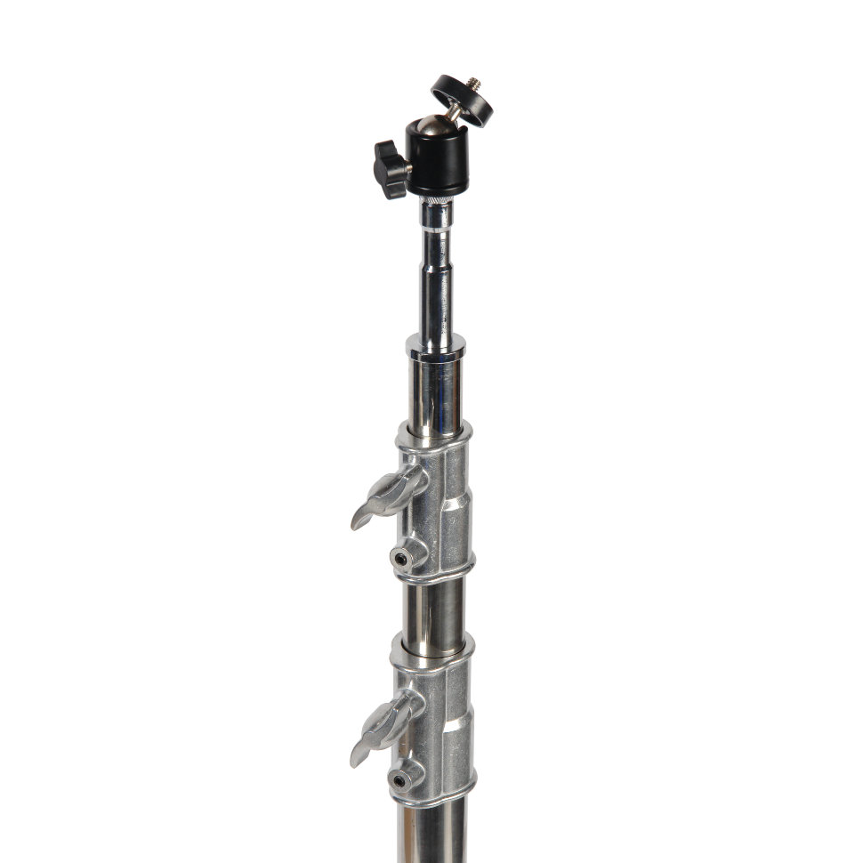 Конструкция стойки выполнена из высокопрочной стали и имеет хромированное покрытие. Это значительно увеличивает срок службы треноги и защищает ее от механических воздействий при транспортировке. Стальной крепежный адаптер 5/8" baby с отверстием 1/4" и шаровая мини-голова позволяют установить оборудование весом до 8 кг |