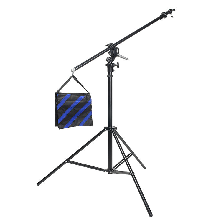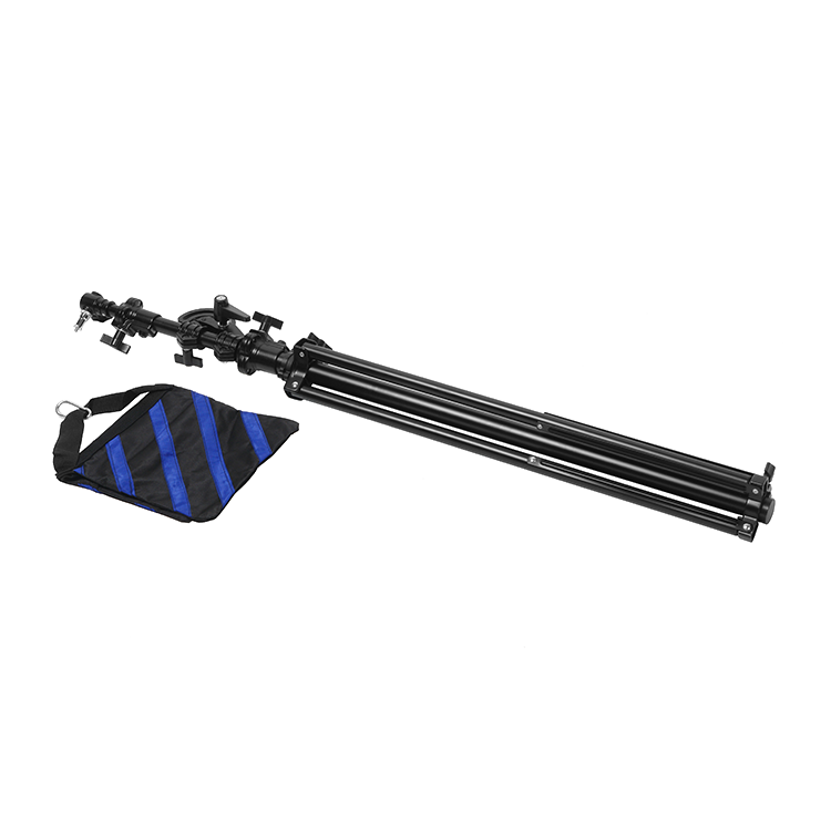 Установка осветительного устройства и другого студийного оборудования выполняется с помощью съемного шпигота 5/8" с винтовой резьбой 1/4'' и 3/8''. Устойчивость конструкции можно компенсировать, используя груз-противовес. В качестве противовеса можно использовать двухобъемный мешок для песка |