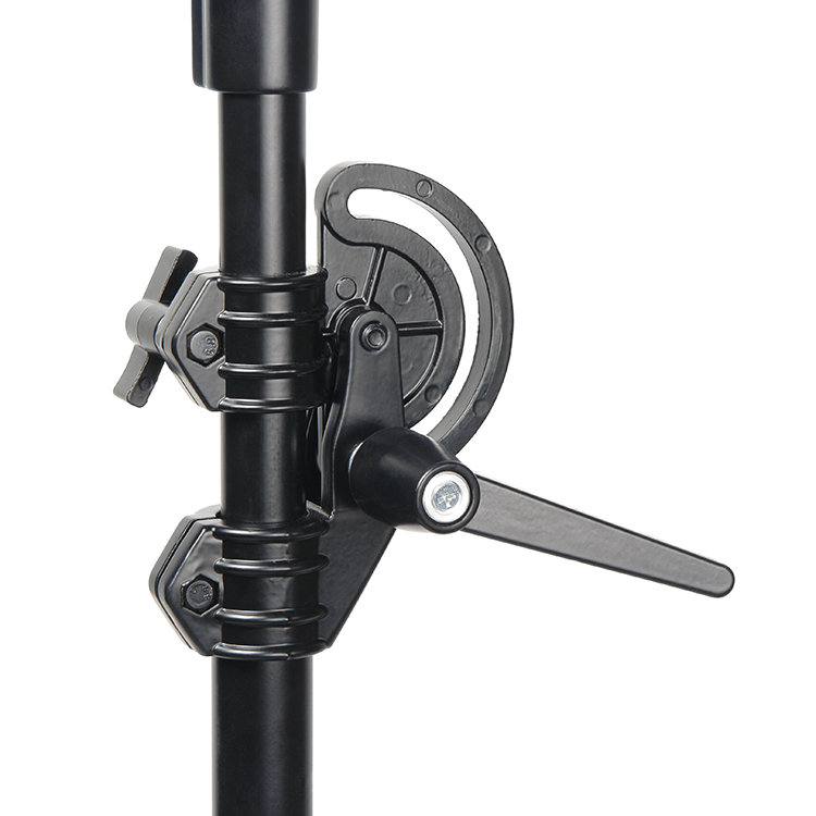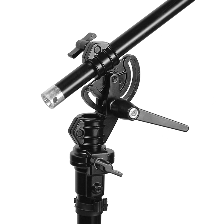 Регулируемый угол наклона перекладины дает возможность удобно разместить осветитель и любое другое съемочное оборудование над объектом. При этом в кадре его видно не будет. Для надежного закрепления угла наклона предусмотрен замок с храповиком |