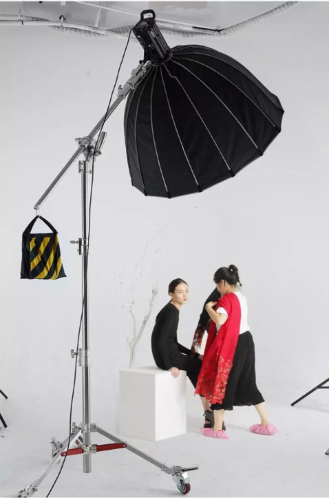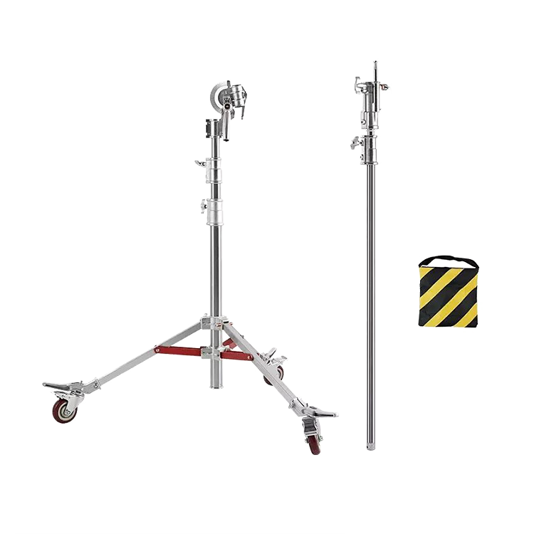 Мощная усиленная стойка - журавль для работы с тяжёловесным оборудованием. Имеет колеса для перемещения по студии |