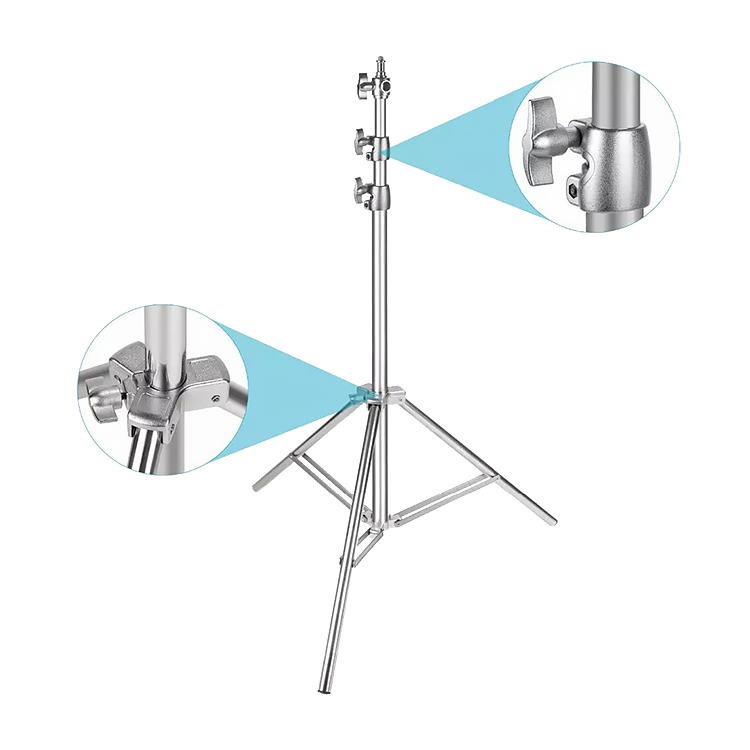 Надежная стойка для установки осветительного оборудования. Имеет усиленную конструкцию с пружинной амортизацией и выдерживает нагрузку до 10 кг. Крепление для оборудования может быть установлено в вертикальном и горизонтальном положении |