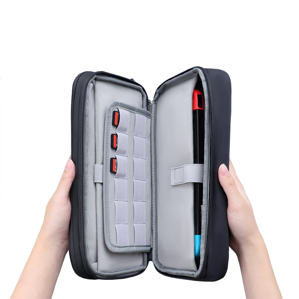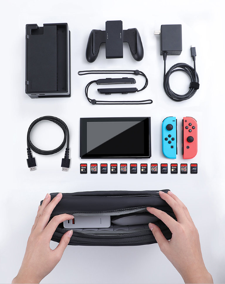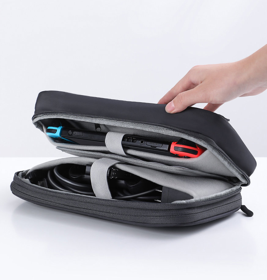 Стильная сумка, разработанная для транспортировки и хранения игровой приставки Nintendo Switch и комплектующих аксессуаров к ней. Представленная модель может использоваться также для переноски мобильных устройств, документов и всевозможных принадлежностей |