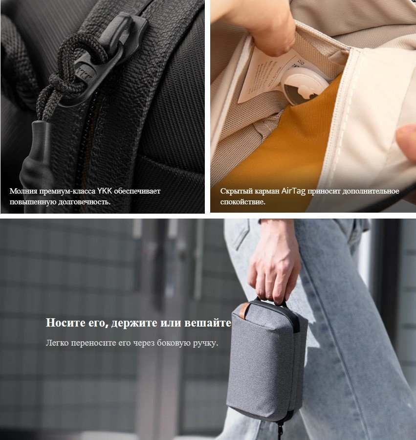 Множество кармановВнутри сумки вы найдете большое количество карманов для всех личных вещей, включая скрытый карман для хранения AirTag. Носите с собой банковские карты, карты памяти, смартфон, ключи и многое другое |
