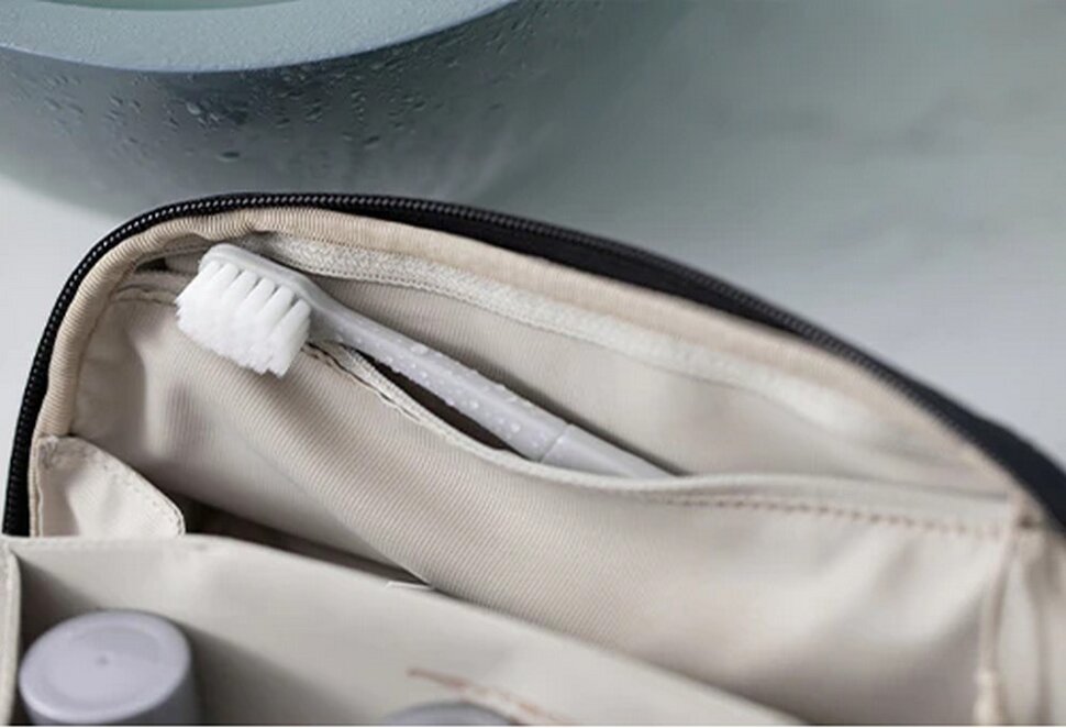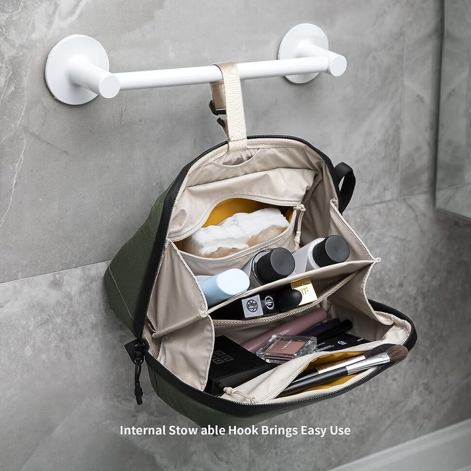 Можно подвесить на крючокСумку со всеми принадлежностями получится подвесить с помощью внутреннего крючка. Он будет надежно удерживать аксессуар, а вы сможете получить доступ сразу ко всем предметам гигиены |