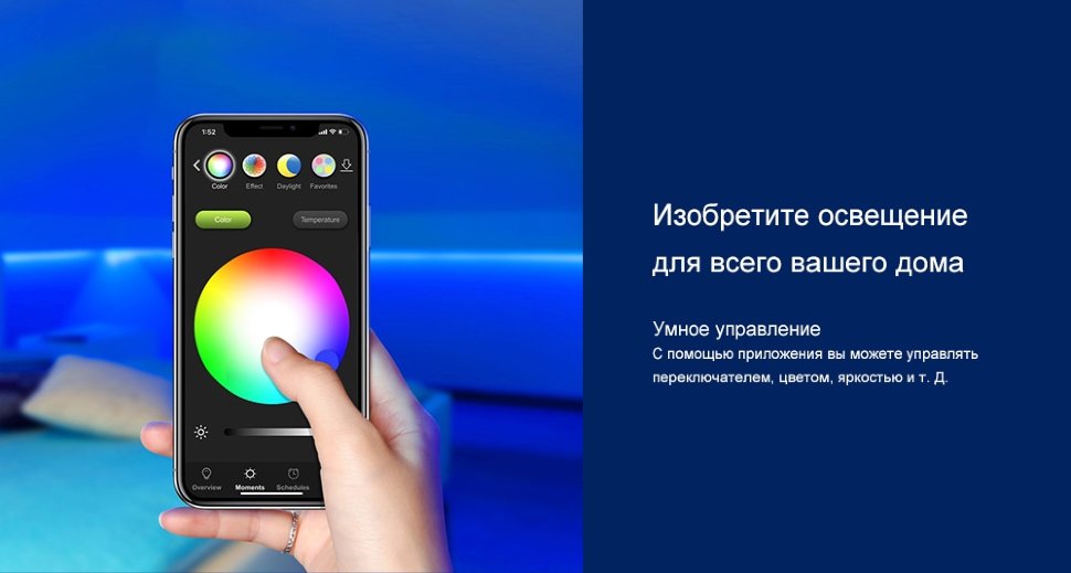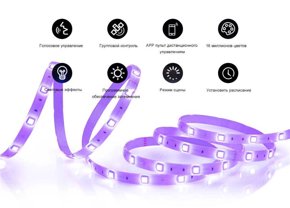 Внутренняя светодиодная лента для создания романтичной непринужденной атмосферы в окружении близких людей. Возможна тонкая настройка практически любого оттенка RGB цвета при помощи приложения. Представленная модель полностью интегрирована с HomeKit, Alexa и Google Assistant |
