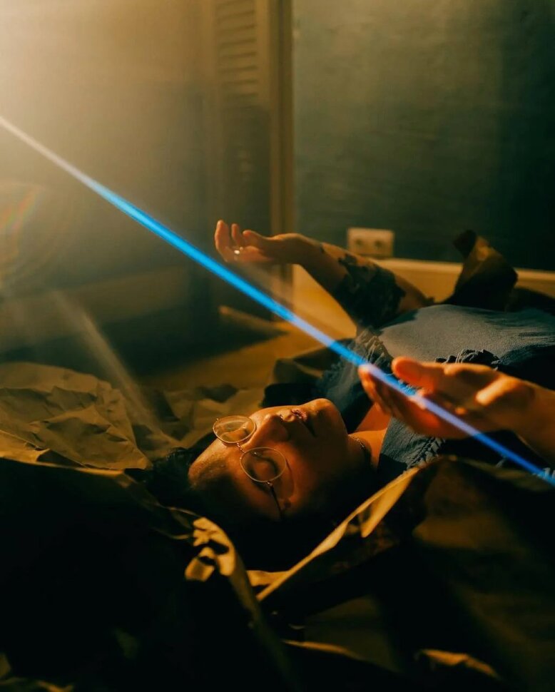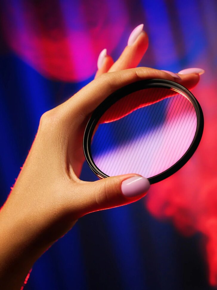 Креативный светофильтр позволяет получить длинный синий блик в кадре, благодаря чему вы получите имитацию винтажной оптики. Конструкция поворотная, а значит вы сможете самостоятельно настроить угол блика |