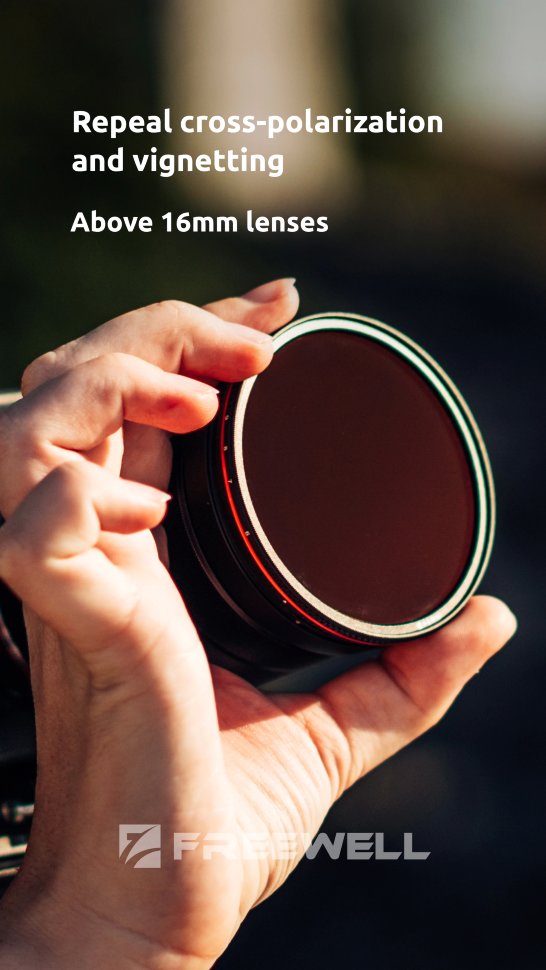 | Профессиональный фильтр нейтральной плотности с регулируемой степенью затемнения от 2 до 5 (ND 4-32) стопов. Оптическое стекло с 18 слоями покрытия не создает виньетку, цветовой оттенок и не ухудшает резкость. |