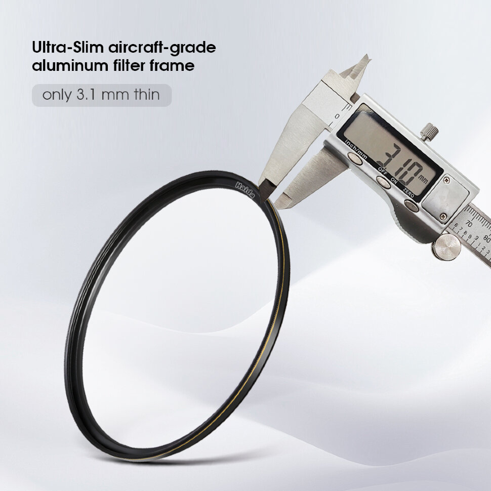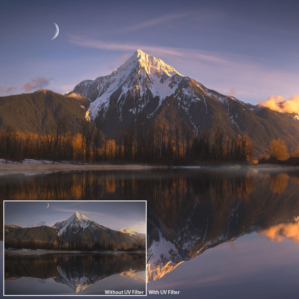 UVУльтрафиолетовый фильтр поможет избежать световой дымки, отсекая вредное излучение. Также его можно использовать в качестве защитного стекла для вашей оптики, так как он не влияет на цвет и экспозицию |