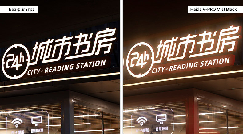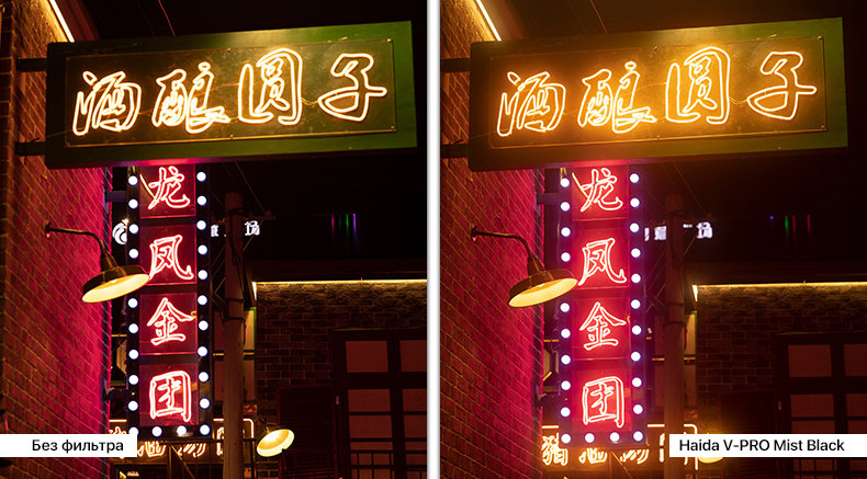Светофильтр вида Mist Black создаёт диффузию, смягчая контраст и добавляя ореол источникам света. С его помощью вы сможете получить естественный винтажный эффект. Подходит для работы с компендиумами |