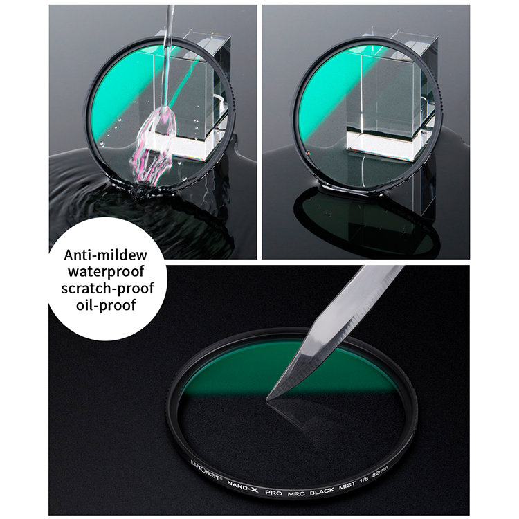 Вся серия фильтров имеет гидрофобное покрытие, благодаря чему капли жидкости моментально скатываются с линзы не оставляя следов, а зажита от царапин гарантирует долговечность  |