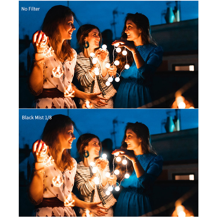 Diffusion фильтры, более известные как Mist, делают контраст более мягким, сглаживая морщины и мелкие дефекты кожи, а вокруг источников света появляется гало, создающий особую атмосферу в кадре. В отличие от прочих видов фильтров, этот гораздо бережнее относится к детализации и насыщенности кадра  |