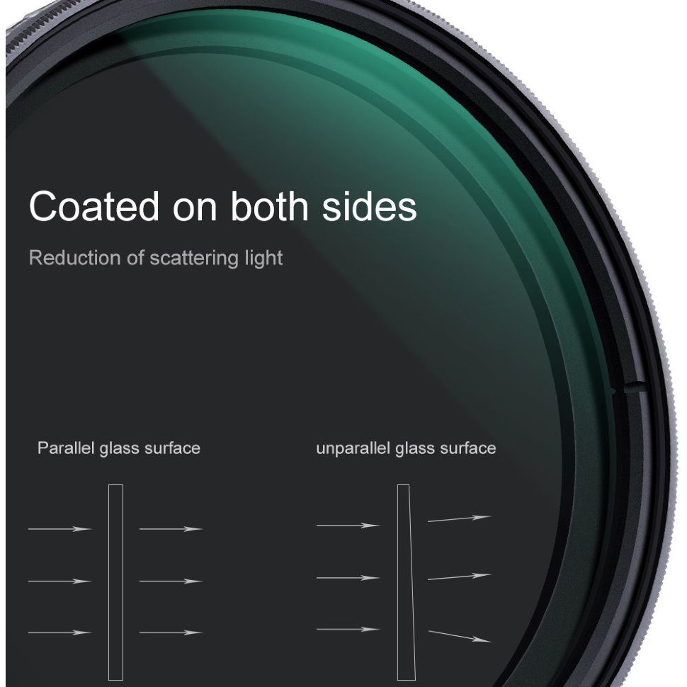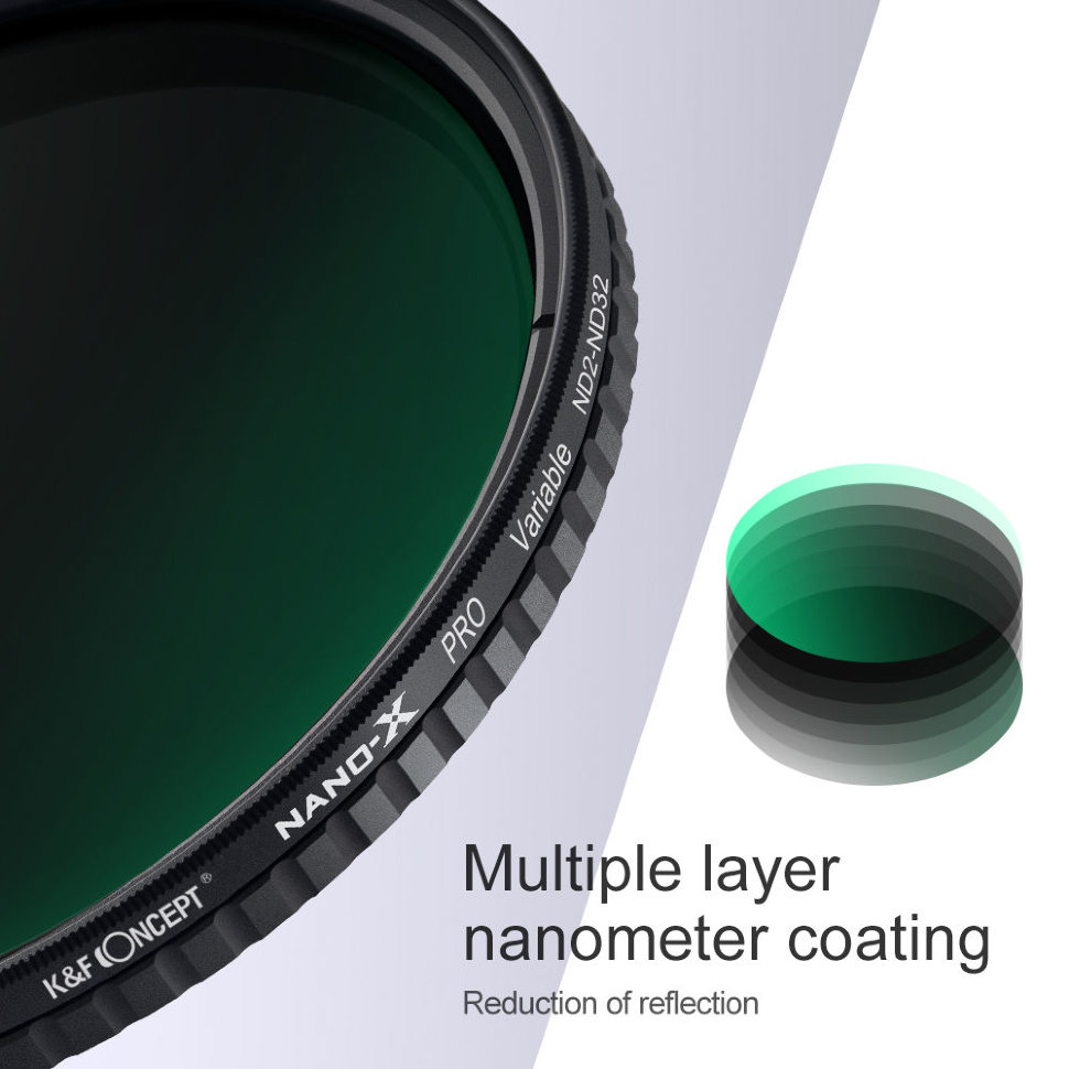 Профессиональный ND светофильтр с изменяемой плотностью выполнен из оптического стекла, не влияющего на цвет и резкость изображения. K&F concept Nano-X имеет Nano-покрытие, отталкивающее влагу, жир и устойчивы к царапинам. Корпус выполнен из материала, который не боится условий повышенной влажности и перепадов температуры  |